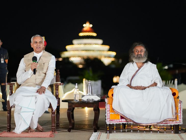 કુદરતી ખેતી ક્ષેત્રે રાજ્યપાલના કાર્યની પ્રશંસા કરી:ગુજરાતના રાજ્યપાલ આચાર્ય દેવવ્રતે આર્ટ ઓફ લિવિંગ ઇન્ટરનેશનલ સેન્ટરની મુલાકાત લીધી; ગુરુદેવ રવિશંકરને મળ્યા હતા