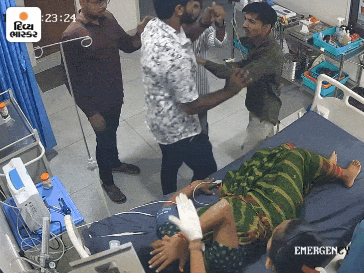 ચપ્પલ કાઢવાનું કહેતાં જ ઢીકાપાટુવાળી થઈ: VIDEO:સિહોરમાં ત્રણ શખસે ઇમર્જન્સી વોર્ડમાં ડૉક્ટરને ગાળો બોલી માર માર્યો, હોસ્પિટલમાં તોડફોડ કરી